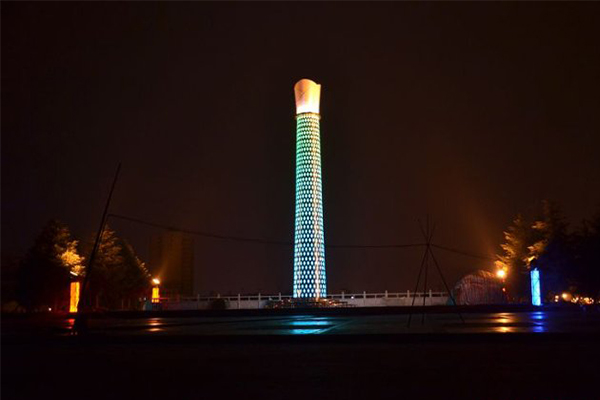 水泥煙囪亮化受亮面的空間部位以及色度遍布情況,具有限制體積、空間界線和正確引導視覺流動性的功效;視覺目標表面上的光與影圖型,也為其披著了富有“表情”的面具。